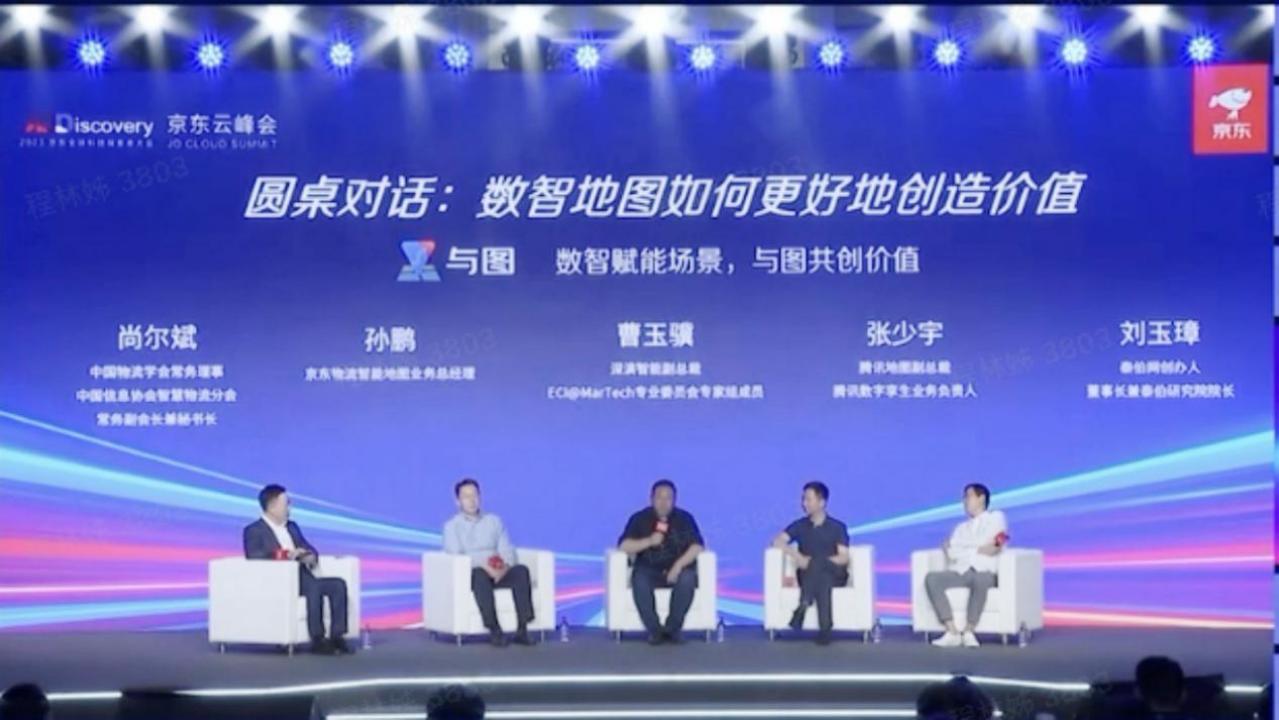 在“数智化时代地图应用如何更好地赋能场景创造价值”的主题圆桌论坛上,中国物流学会常务理事尚尔斌、京东物流智能地图业务负责人孙鹏、BB视讯智能副总裁曹玉骥、腾讯地图副总裁张少宇以及与会的业界专家、学者围绕数智地图如何更好地创造价值,进行了深入交流和探讨。