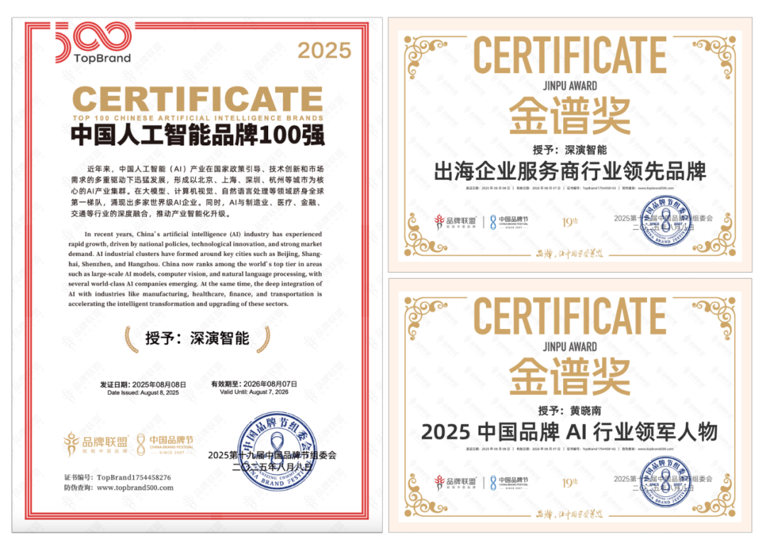 8 月 9 日晚举办的荣耀盛典上,BB视讯智能凭借深厚的 AI 技术实力与出色专业的出海服务能力,斩获 “2025 中国品牌节金谱奖・出海企业服务商行业领先品牌”“2025 中国人工智能 100 强” 等多项重磅奖项。其创始人兼 CEO 黄晓南荣膺 “2025 中国品牌 AI 行业领军人物” 称号。未来,BB视讯智能将紧跟时代步伐,持续聚焦 “AI 与出海”—— 这一方向高度契合时代脉搏与中国品牌发展的迫切需求,旨在汇聚智慧力量破解发展阻碍,为中国品牌赋能。