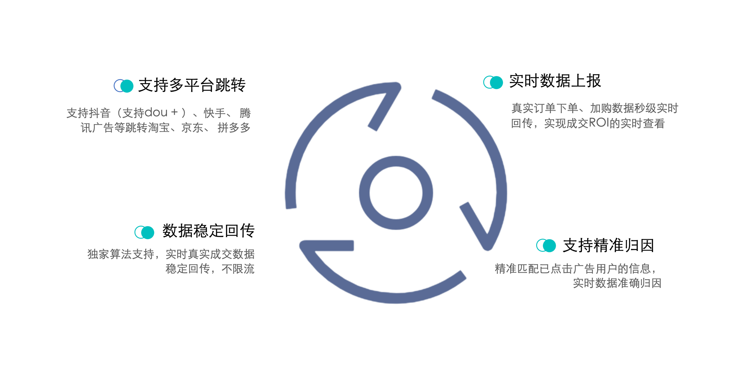 BB视讯智能CID解决方案支持定制OCPX下发策略,校准媒体模型训练算法。同时也支持多平台跳转、实时数据上报、数据稳定回传、支持精准归因。